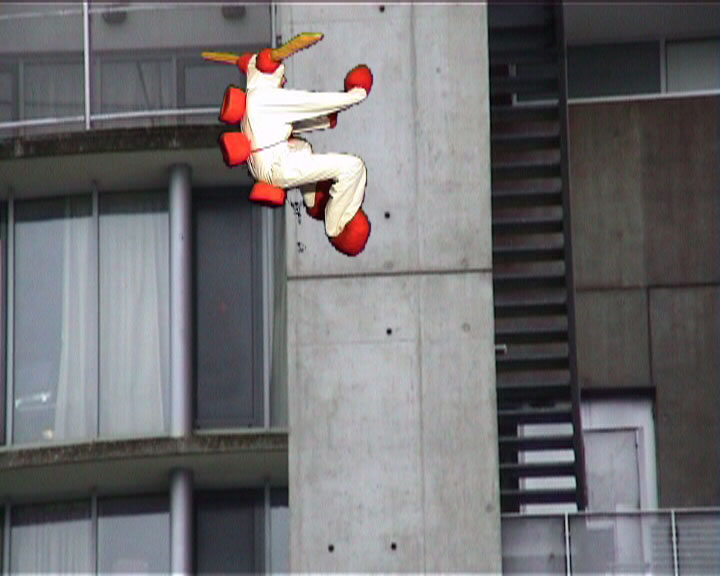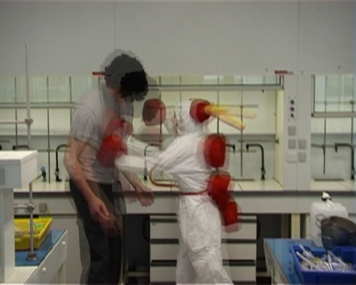 Ainsi, au bout de 3 semaines de tournage intensif dans divers endroits de Cergy comme la gare RER, ou encore l'IPSL, le O'Sullivan, l'Ensea ..., de 4 semaines de post production (montage et effets spéciaux, sans compter l'implémentation du son), une première version vit le jour le matin ( vers 6 heures !)du Vendredi 28 Fevrier 2003, matin miême de la seconde soirée de l'Eponge.
