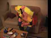 - Le charcutage d'un canapé entier pour la confection du costume de Super Eponge!